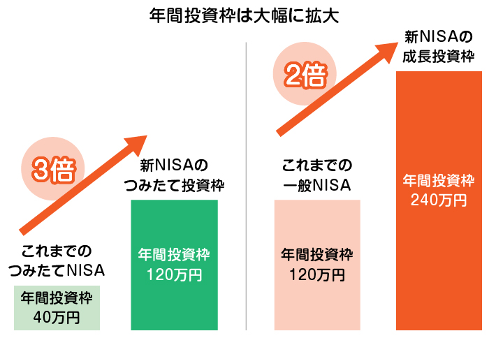 新NISAの年間投資枠は大幅に拡大され、これまでのNISAに比べて非課税で投資できる範囲が広がりました。