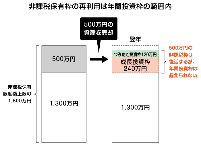新NISAでは、売却した資産の取得価額分の非課税枠を翌年以降に再利用できます。この仕組みにより、柔軟な資産運用が可能となります。