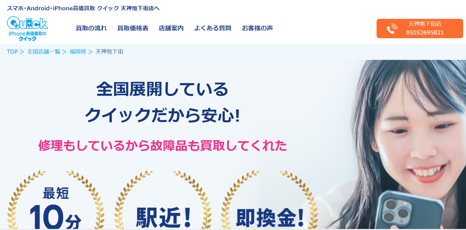 「クイック天神地下街店」はスマホの修理も行っているので、画面割れやジャンク品などの不良品も買取対応が可能です。