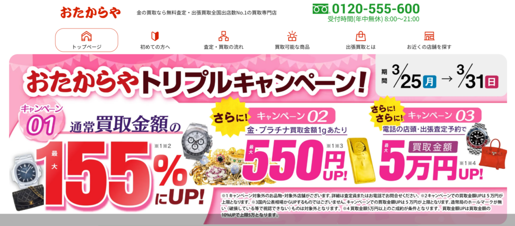 | 買取形式 | 宅配、出張 | 宅配 | 宅配、持込、出張 | 宅配、持込 | 宅配、持込、出張 |