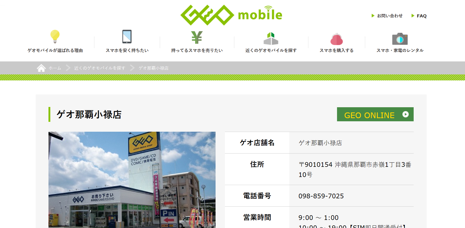 「ゲオ那覇小禄店」ではスマホの販売、買取、レンタルを行っています。