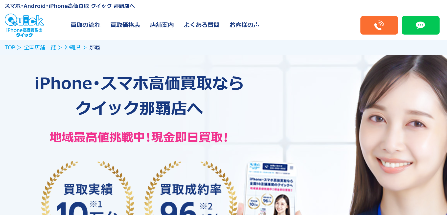 「クイック那覇店」では、iPhoneやAndroidスマホ、iPadなどのタブレットの買取と修理を行っています。