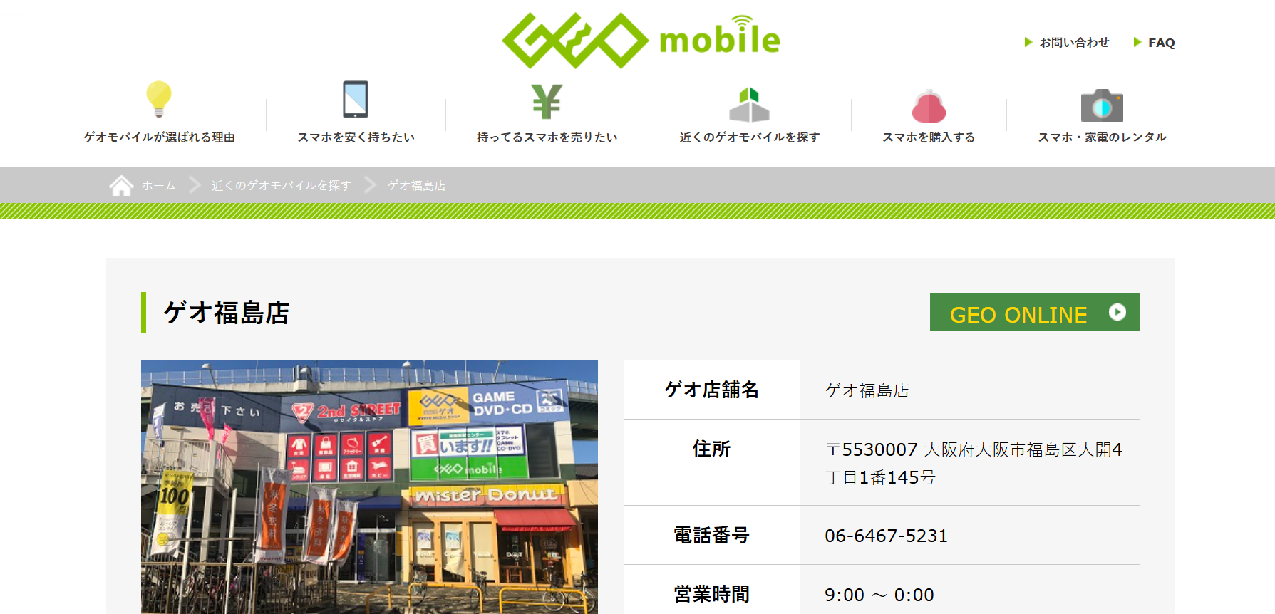 「ゲオ福島店」は、スマートフォンの販売、買取、レンタルを行っている専門店です。