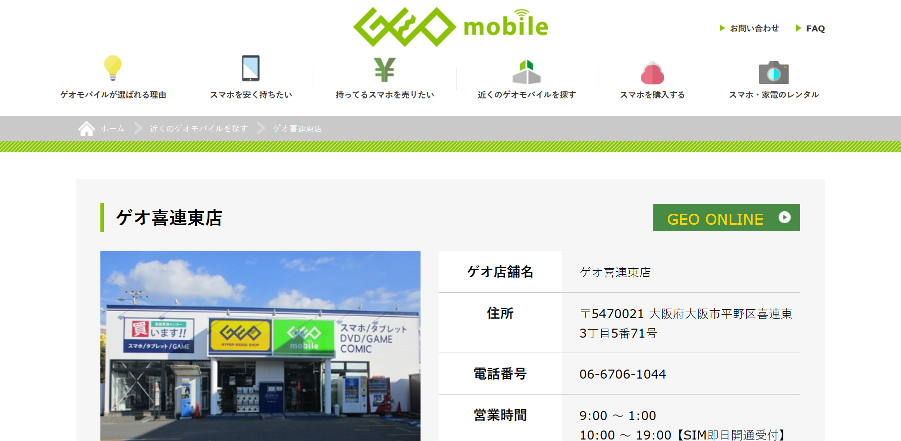 「ゲオ喜連東店」はスマホの販売、買取、レンタルを展開する専門店です。