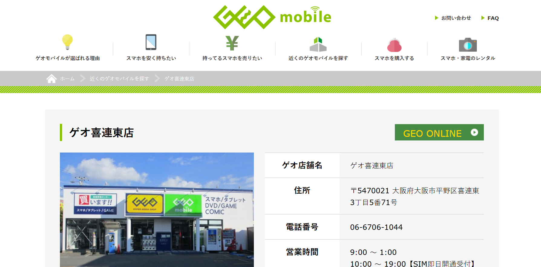 「ゲオ喜連東店」はスマホの販売、買取、レンタルを行っている専門店です。