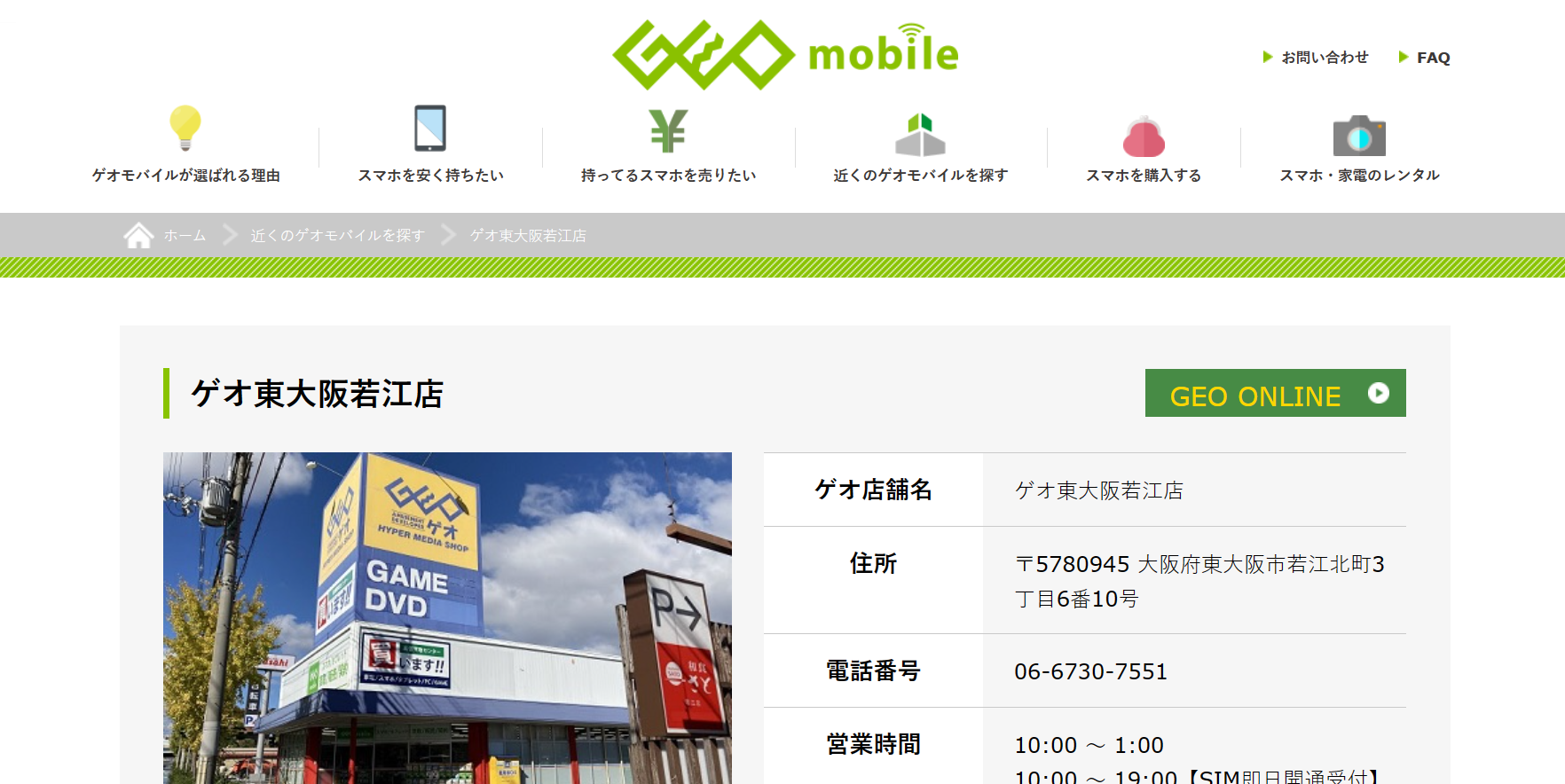 「ゲオ東大阪若江店」はスマホの販売、買取、レンタルを行っているお店です。