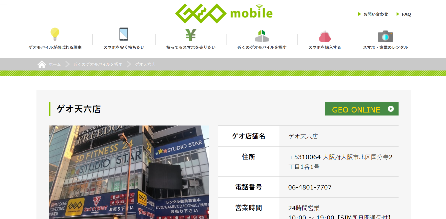 「ゲオ天六店」はスマホの販売、買取、レンタルを行っているお店です。