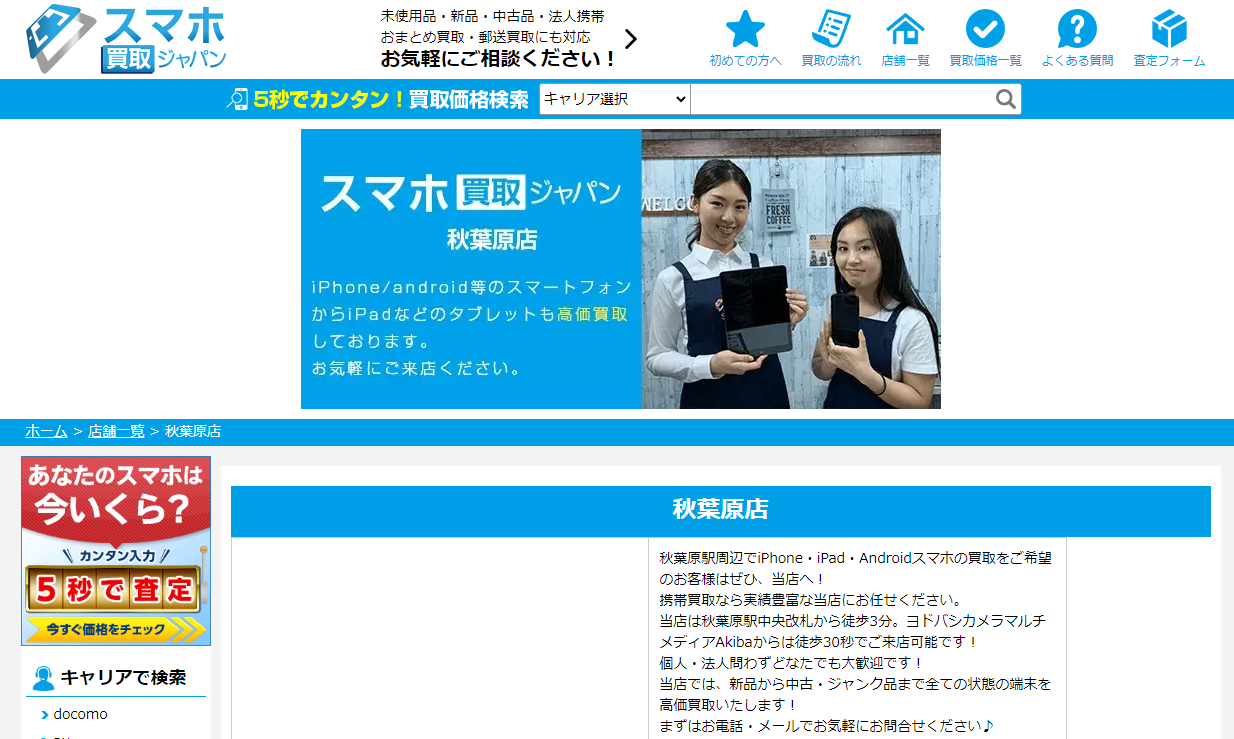 「スマホ買取ジャパン秋葉原店」は、iPhone、Android、iPadの買取をしているお店です。