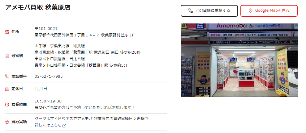 JR「秋葉原駅」電気街口から徒歩4分の位置にあり、年中無休で営業しているお店です。