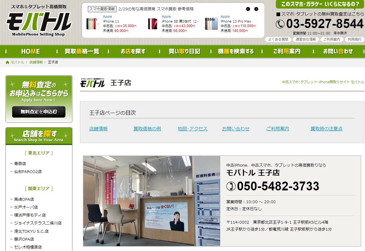 「モバトル王子店」は、iPhone、Android、タブレットの買取を行っています。
