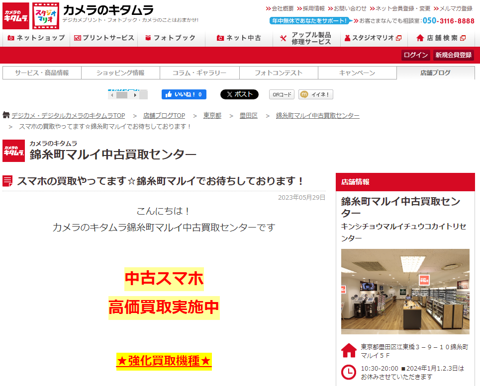 「カメラのキタムラ錦糸町マルイ中古買取センター」は、中古スマホの買取をしています。
