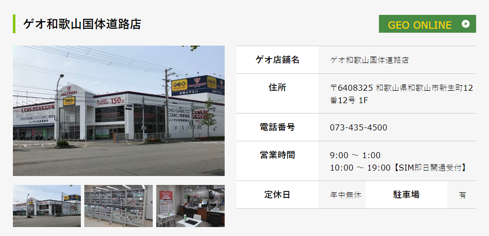 「ゲオ和歌山国体道路店」はiPhone、Android、タブレットを買取しています。年中無休で営業しているので、いつでもスマホを売りに行けるお店です。