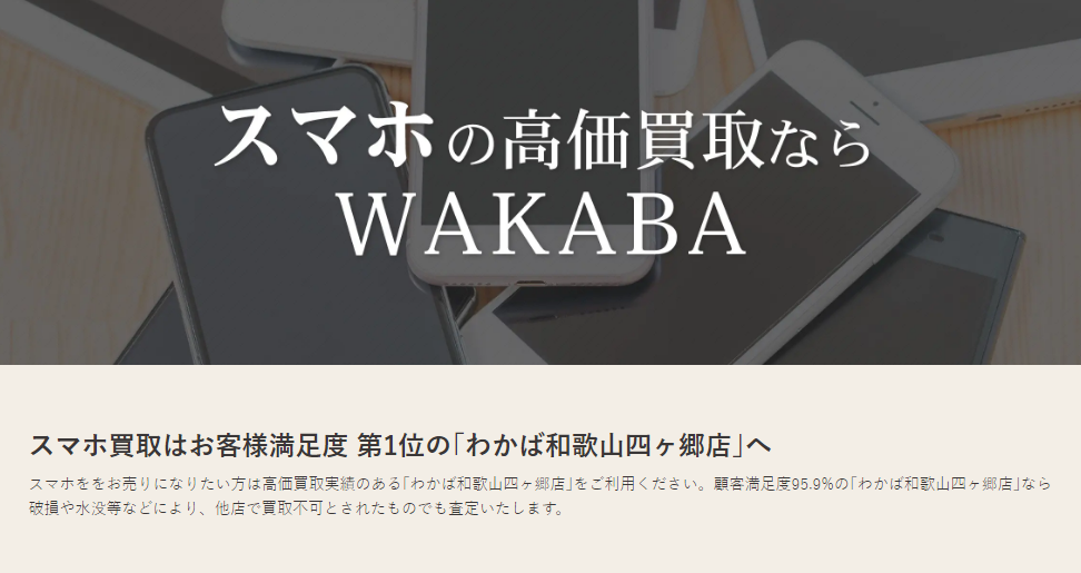 和歌山市周辺にお住まいの方で、スマホを売るなら「わかば和歌山四ヶ郷店」をおすすめします。