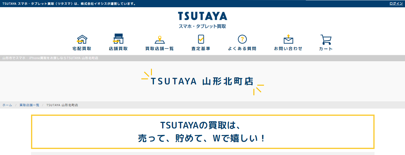 TSUTAYA山形北町店は、スマホ・タブレットの店舗買取と宅配買取を行っています。